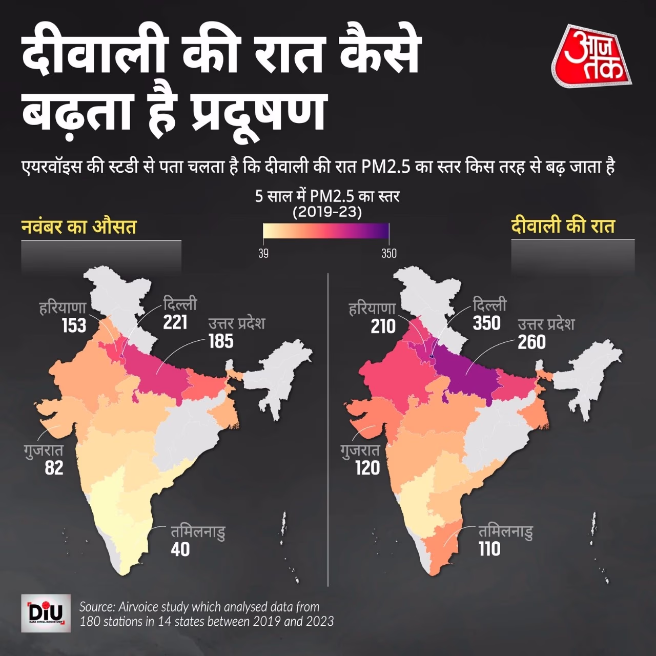In Vivek Vihar, levels reached 1800 micrograms per cubic meter, which is 30 times above the standard limit. In Nehru Nagar and Patparganj, at around midnight, the levels recorded were approximately 1500 micrograms per cubic meter, nearly 25 times above the standard for PM2.5.