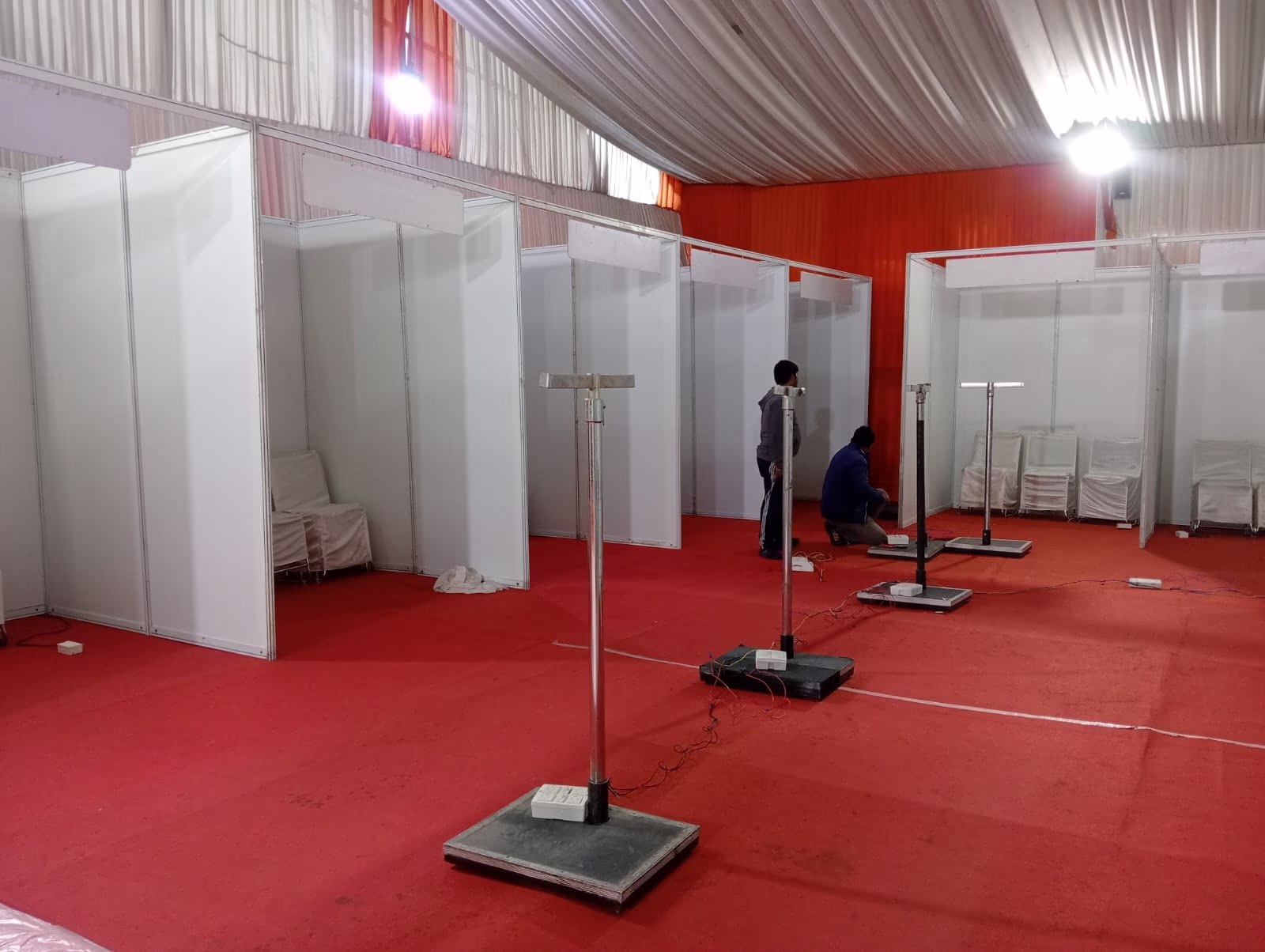 Starting with the ruling Aam Aadmi Party, intense preparations are in progress ahead of the election results. A large stage has been set up outside the AAP office, and pathways are being made for the expected influx of people tomorrow. Additionally, mats are being laid, and tables and chairs are being arranged.