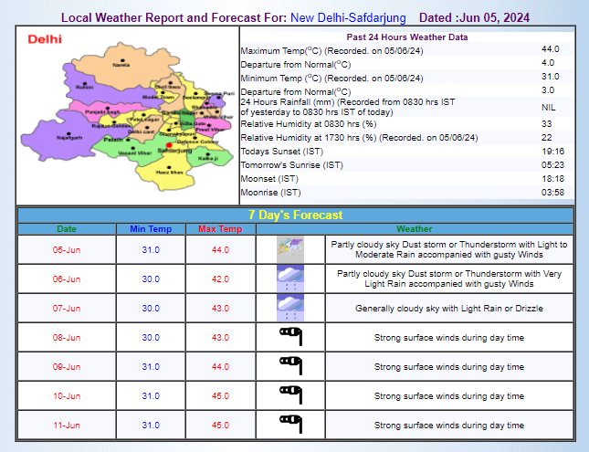 The IMD forecasts a persistent heatwave in areas of Uttar Pradesh, East Madhya Pradesh, Bihar, and Jharkhand. In contrast, Delhi, including the North-Western Indian region, is expected to continue experiencing relief.