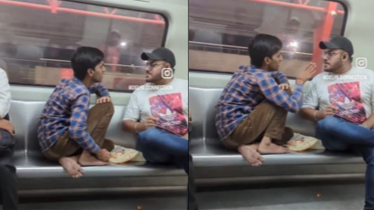 Video footage shows two young men seated in the metro engaged in an argument. One of them sits with his feet up, calmly engaging in the confrontation. The man wearing a cap insists, 'I said nothing, your ears are ringing.' To which the other replies, 'It’s not my ears that are ringing, it’s your mouth that is making noise.' 'First, sit properly,' suggests the man in the cap. 'Why should I listen to you? Do you think you are some kind of authority?' counters the other.