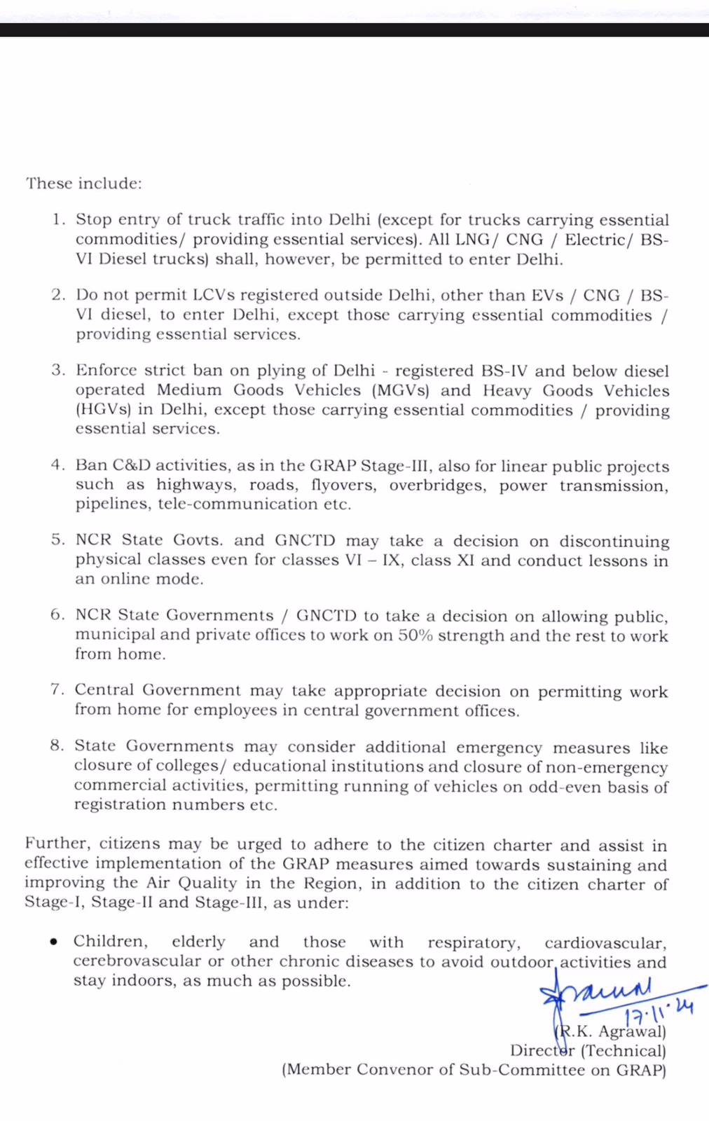 Similar to GRAP-3, restrictions on construction and development activities are in place for public projects such as highways, roads, flyovers, bridges, power transmission, pipelines, and telecommunications.