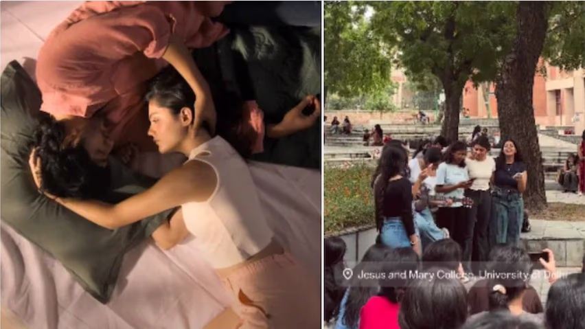 This captivating scene took place at Jesus and Mary College within Delhi University. It shows six or seven girls performing a song under a tree, surrounded by a large group of students. As soon as they begin, other girls join in as well. The video was shared on Instagram by a user named Sirat.