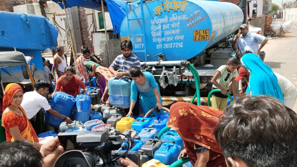 In Vasant Vihar's Kusumpur Pahari, people bear the scorching sun to line up for water. With most men at work, women shoulder the burden of securing water for their households. Some locals even queue up overnight, such is their plight.