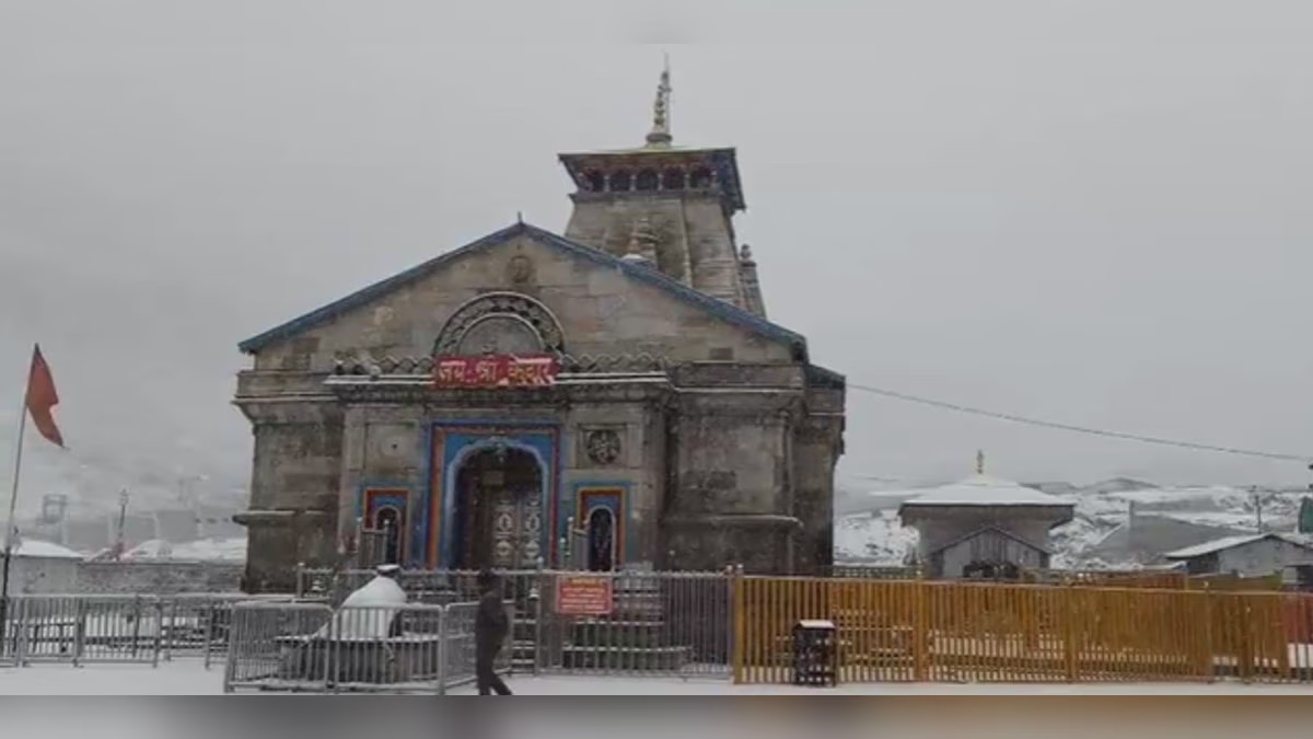 Heavy snowfall continues unabated at the Kedarnath Shrine in Uttarakhand. According to the Meteorological Department, the effect of a western disturbance brings continuous snow from the early morning, draping the entire temple complex and surrounding peaks in a pristine white sheet. (Photo: ITG)