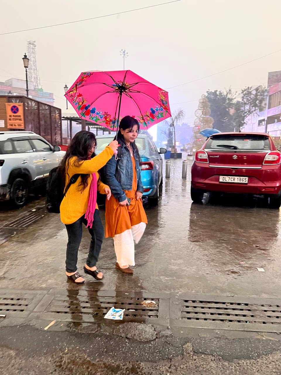 Mandi House witnessed morning drizzles, with people sheltering under umbrellas. The cold winds further elevating the excitement of winter. (Photo: ITG)