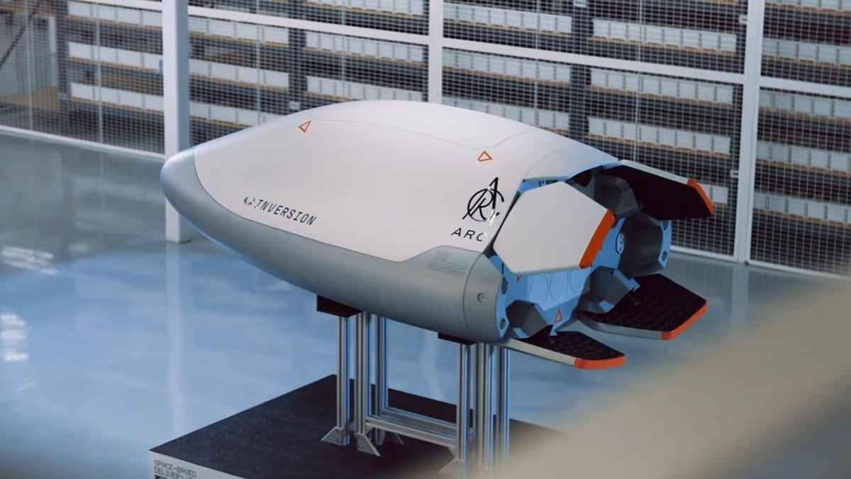 Inversion, which operates in the aerospace and defense sectors, has developed the world's first Space Delivery Vehicle. This vehicle, known as the Arc Vehicle, travels through space to deliver to any city on Earth in just 60 minutes.
