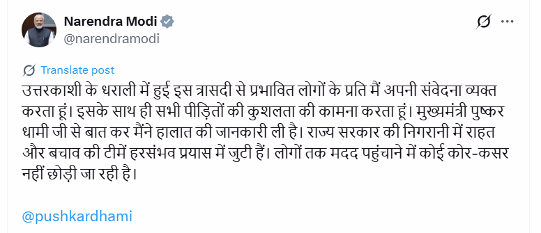 Pushkar Singh Dhami, the CM of Uttarakhand, stated that Home Minister Amit Shah reached out by phone to assess the damages in Dharali following the unfortunate cloudburst incident. The state government briefed him about relief and rescue efforts, and he assured full support from the central government. PM Modi posted on X (formerly known as Twitter) ensuring that every possible effort is being made to extend help.