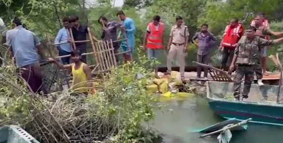The army and SDRF teams are on site with eight boats and four boats, working mainly to halt the erosion of Mangeshpur drain and reinforce embankments. Despite the challenges posed by the strong current, efforts persist at a war footing. The Army has prepared large iron-basket structures, filling them with soil-stuffed plastic bags to counter the water's force.