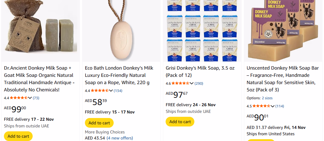 Dubai has embraced donkey milk soap too, with various brands selling bars made from donkey milk. Initially, it was launched in Jordan amidst skepticism, but as the benefits became evident, its demand significantly increased.