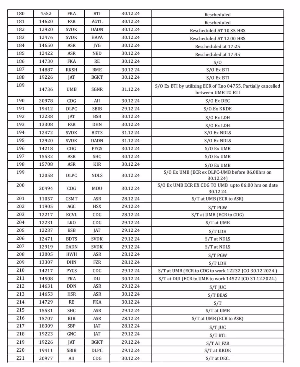 Officials from the DRM office in Firozpur confirm ongoing updates for passengers regarding affected trains, utilizing help desks and public address systems for continuous announcements.