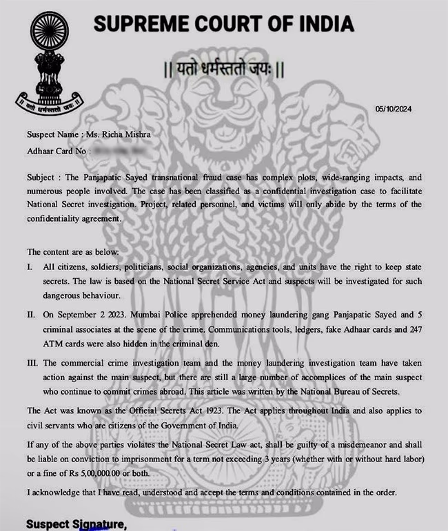Two minutes later, a different voice said, 'There’s a money laundering case against you, involving 2 crore rupees with Punjabi Sayed. They asked for my bank account details, home cash reserves, and gold holdings. With no significant property revealed, the voice intensified. Skype documents with four people’s faces were sent to me. Two were arrested. An arrest warrant was issued in my name.