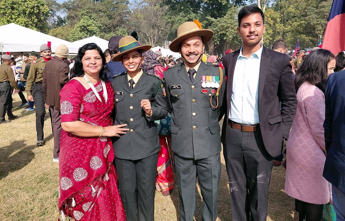 Her father, Major Sandeep Jadhav, is stationed with the 164 Infantry Battalion (TA) - Home and Hearth Battalion - in Nagaland. Sai has been commissioned as a Lieutenant in the Indian Territorial Army (TA), becoming the first woman officer to join the TA after graduating from the IMA.