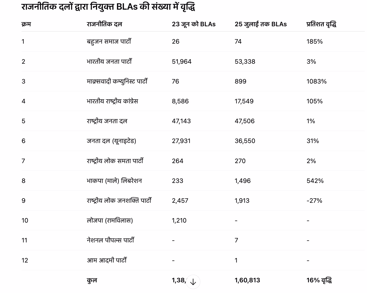 Out of 78.9 million total voters, over 72.4 million submitted voter forms, marking a significant achievement. This success was made possible by the involvement of the Election Commission, district officers, election officers, BLOs, numerous volunteers, and key political party members.