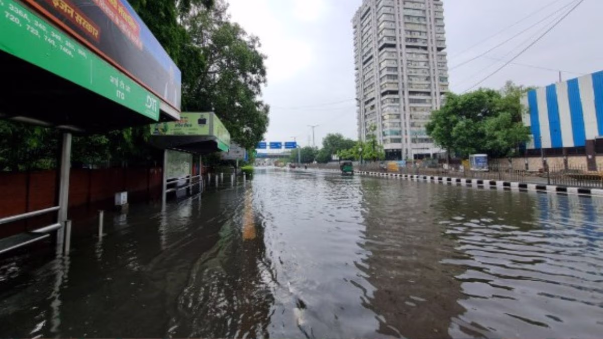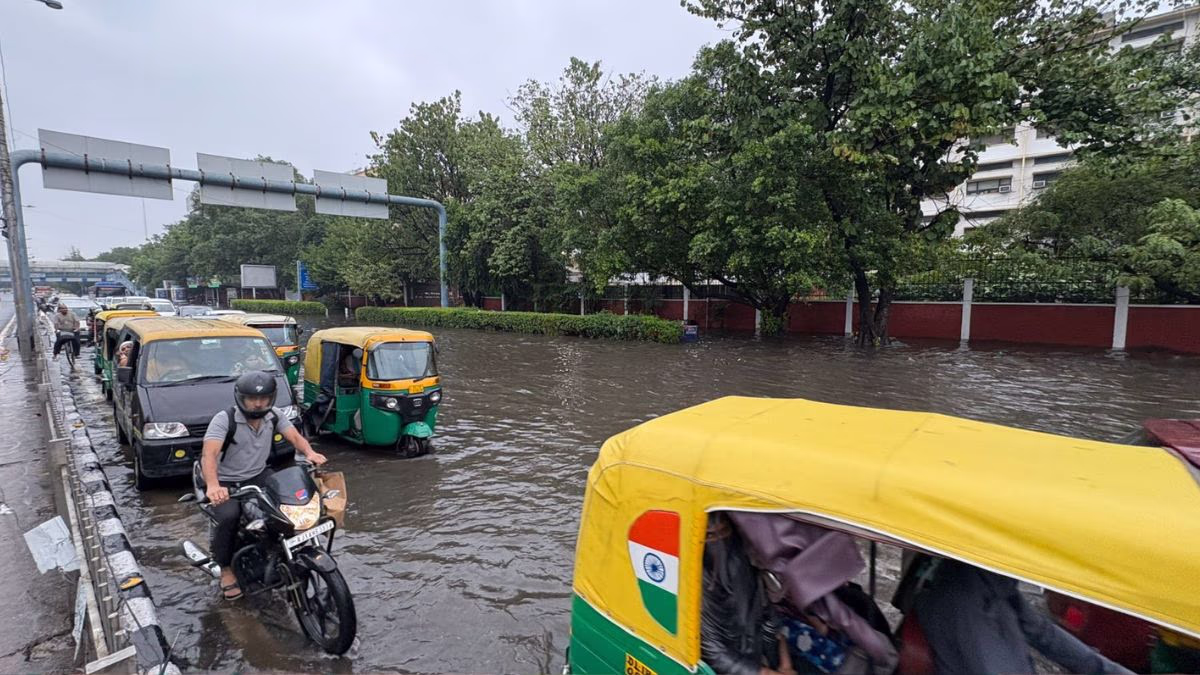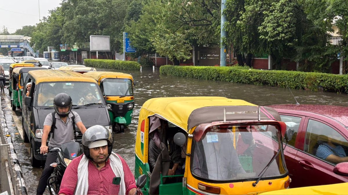 The inundation around Moti Bagh, Minto Road, and Airport Terminal 1 has made commuting challenging. Waterlogged streets are making it difficult for vehicles to pass.