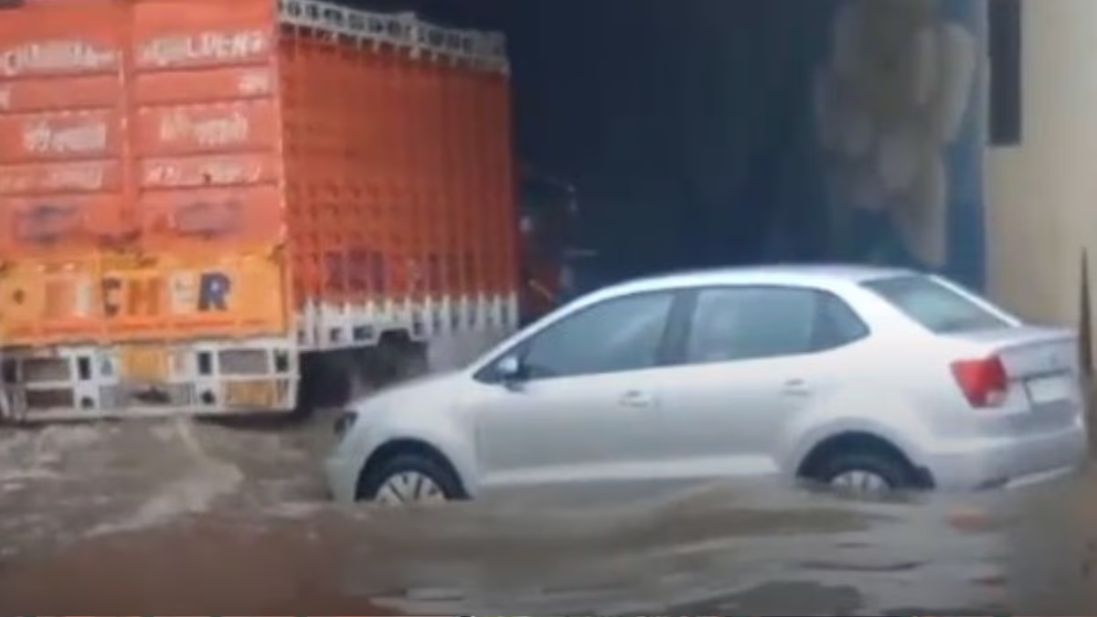 A car was seen submerged in the heavy flooding on Minto Road while more than 100 flights were disrupted due to the storm and heavy rain at Indira Gandhi International Airport. According to the Airport Authority, about 49 flights were diverted between 11:30 PM Saturday and 4:00 AM Sunday.