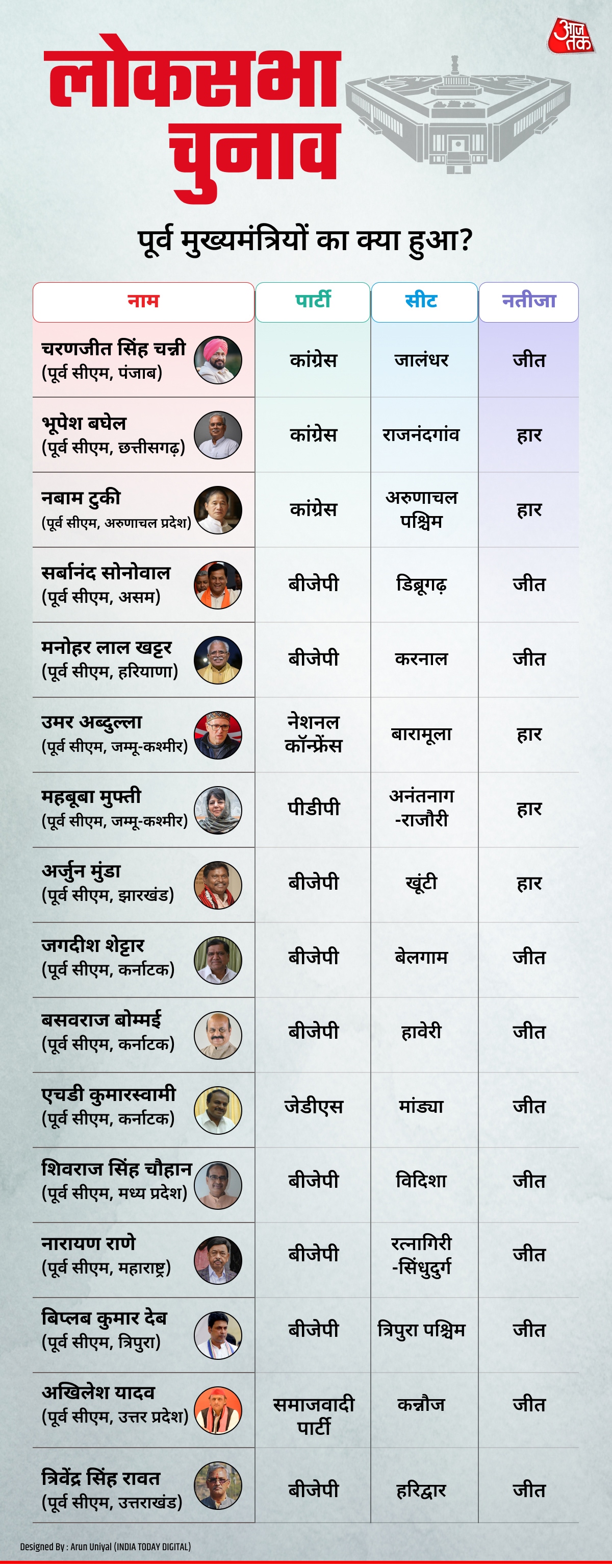 Punjab's ex-CM and Congress candidate Charanjit Singh Channi has won the Jalandhar seat. He defeated BJP's Sushil Kumar Rinku by a margin of over 1.75 lakh votes.