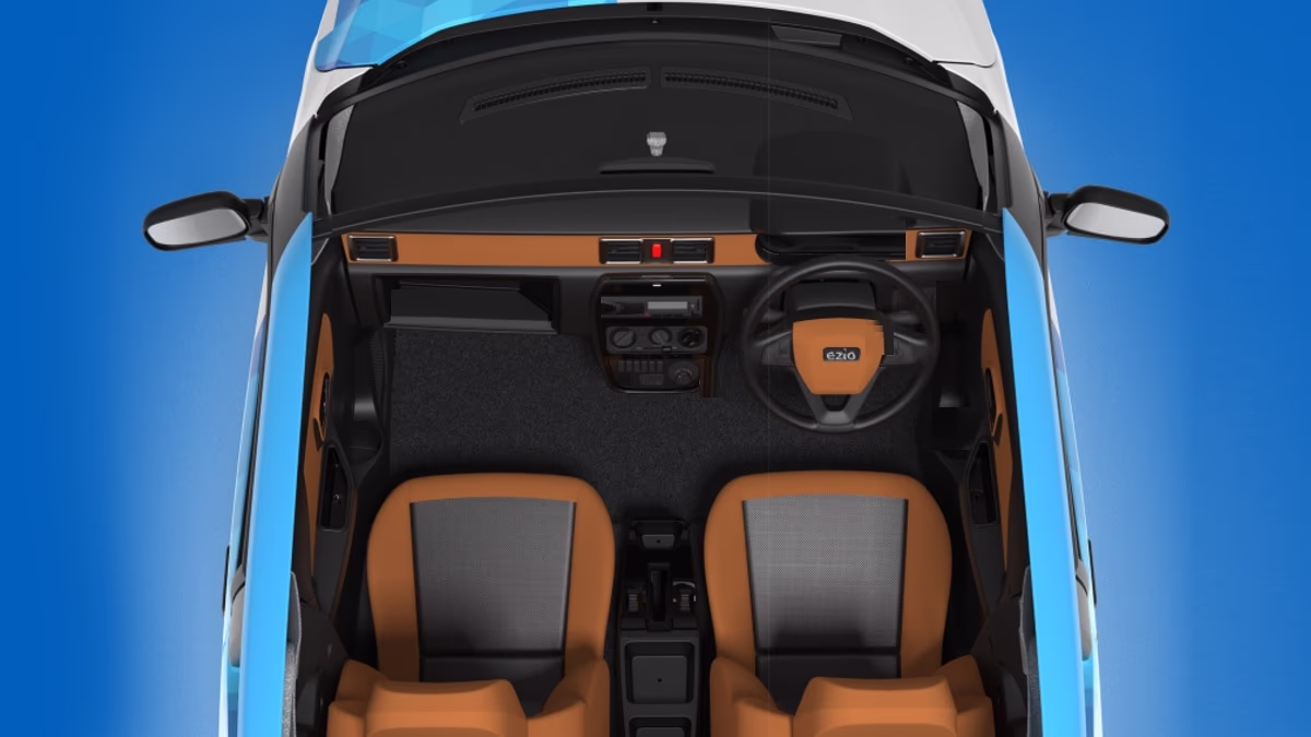 The cabin offers two seats at the front, though efforts have been made to maximize spaciousness given the car's size. It boasts a modern dashboard, glove box, infotainment system with Bluetooth connectivity, digital instrument console, steering-mounted controls, adjustable headlamps, and a 16-inch speaker.