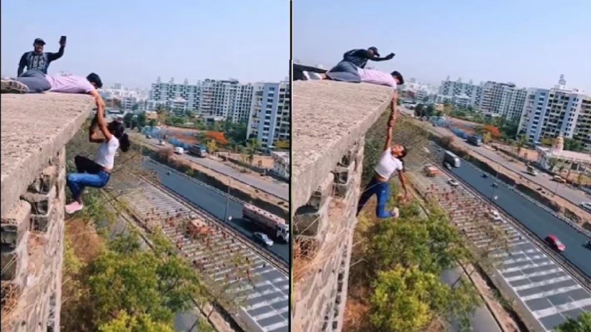 The obsession to go viral overnight on Social Media through creating reels can be life-threatening, as evidenced by several unnerving incidents. One such alarming video gaining rapid traction on the internet shows a girl hanging off a skyscraper by holding a companion's hand. Witnessing the height of the building and the girl's audacity will send chills down your spine. Following the video going viral, Pune police intervened with decisive actions.