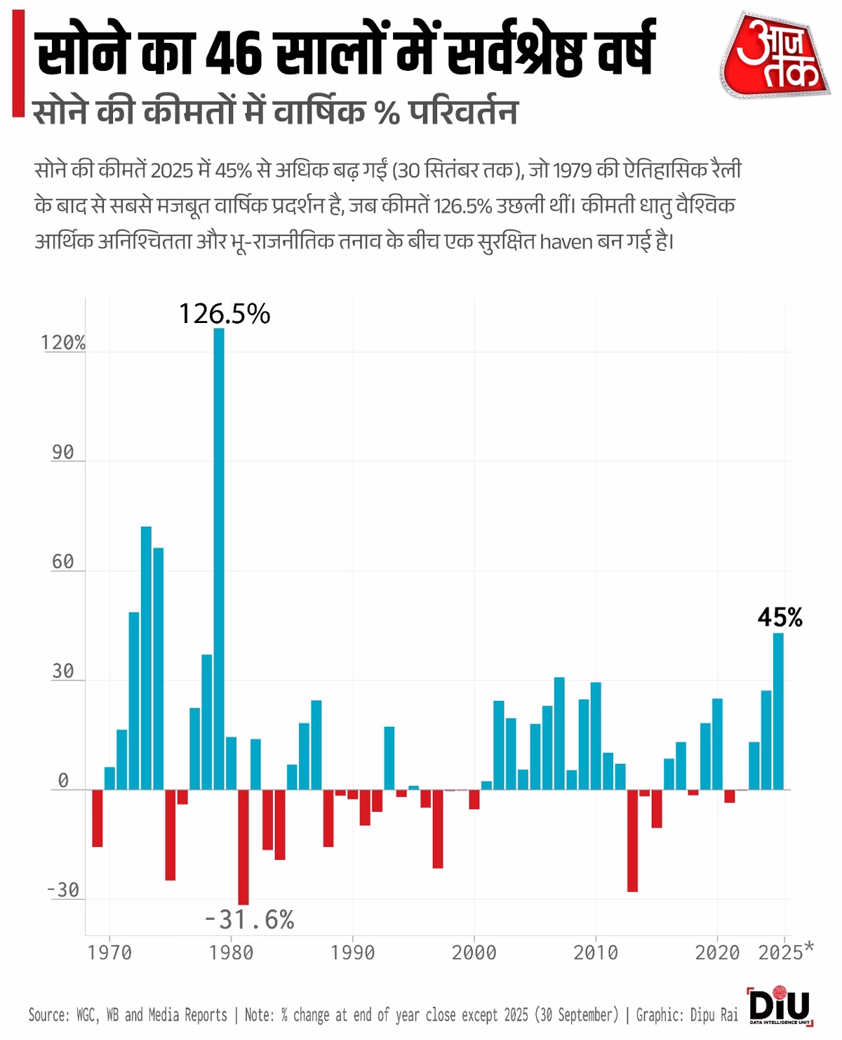 $3,848/ounce: Record high gold price as of Monday+45%: Rise in gold prices since January 1, 20251979: The last time gold prices spiked so rapidly, soaring by 126% during the Iranian revolution and oil crisis.