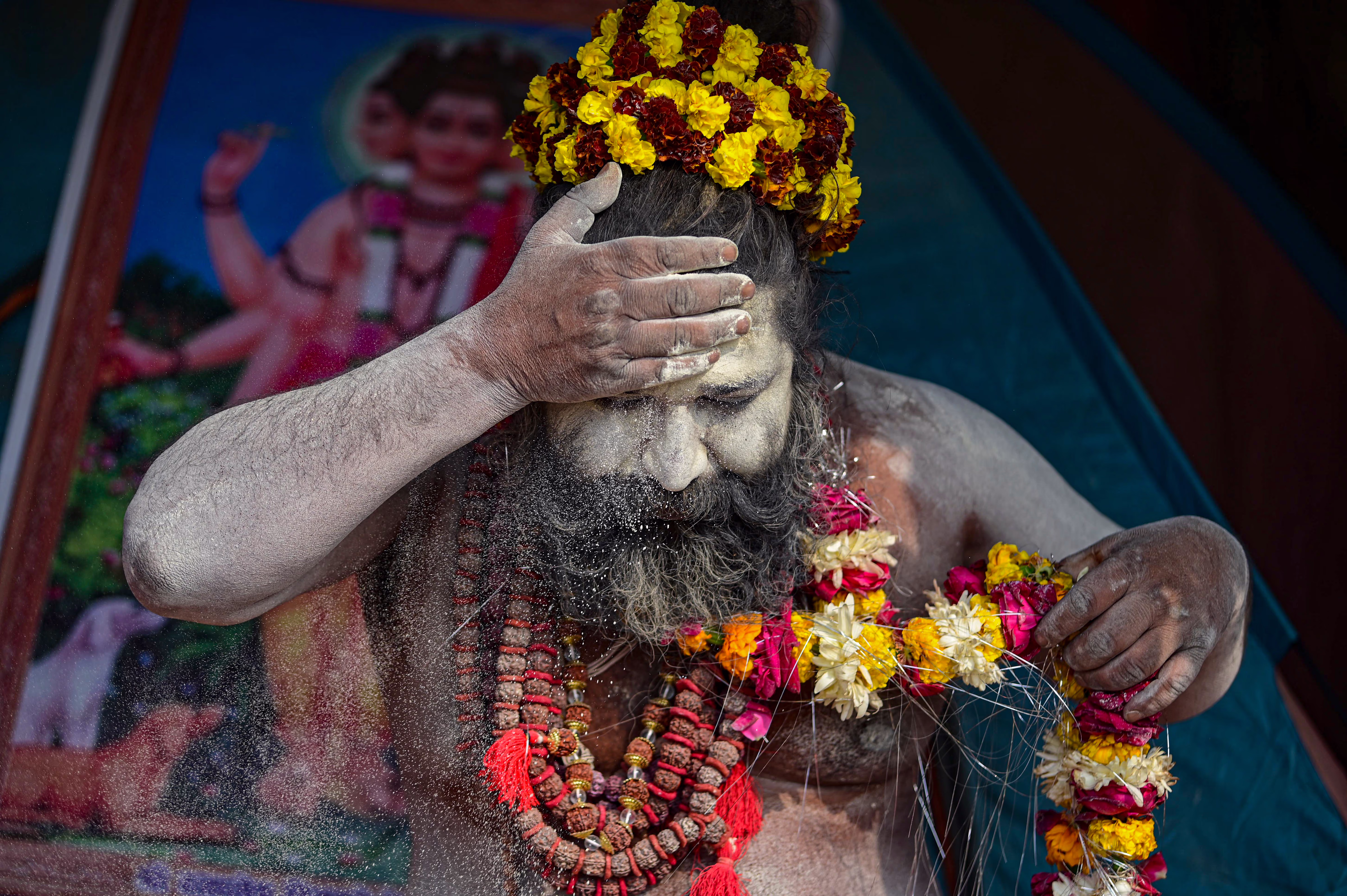 Naga saints cover their bodies in ash and don Tripundra or other Shaiva tilaks, signifying renunciation and penance.