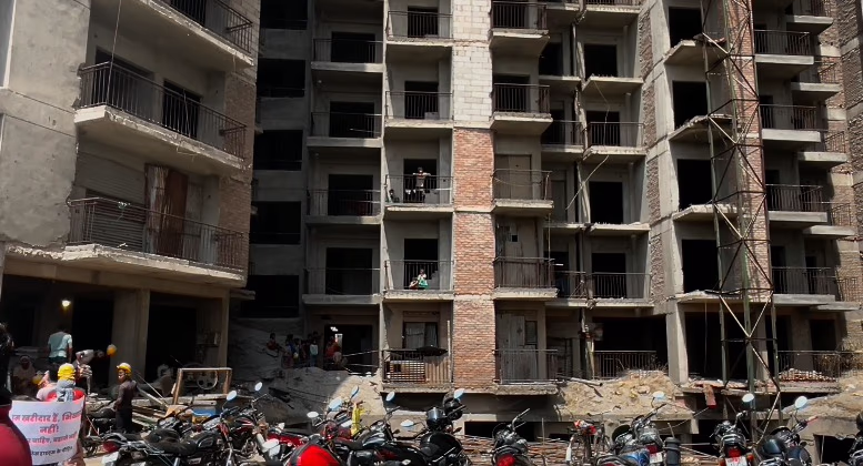 Flat buyer Neeraj Dubey booked his flat in Rudra Palace Heights in 2012, with the builder promising possession by 2015. However, the project was blacklisted in 2018. Like Neeraj, about 900 people booked flats in this project, but their dreams were halted before they could move in, as construction came to a standstill. Neeraj claims that when a legal case date nears, 100 laborers come to work, but after 20 days, the work stops again. He states that if the work had been genuinely ongoing for 15 years, they wouldn't be standing on the road.