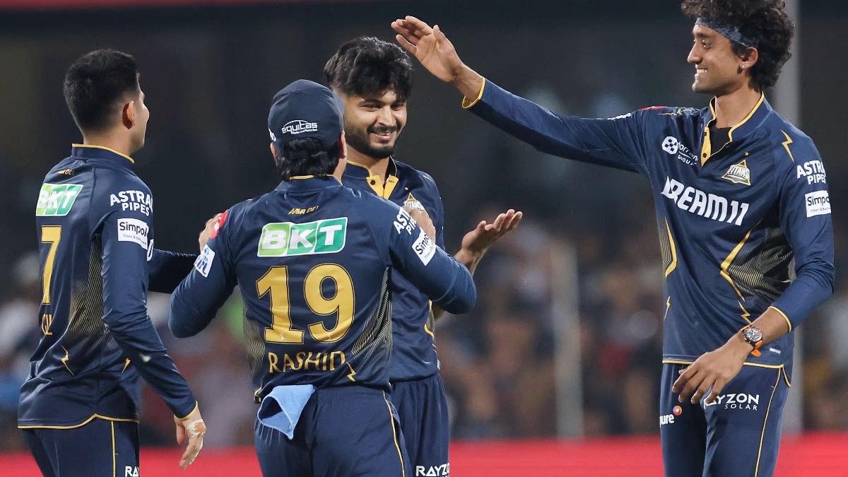 Sai Sudharsan, Shubman Gill (captain), Jos Buttler (wicketkeeper), Shahrukh Khan, Rahul Tewatia, Arshad Khan, Rashid Khan, Sai Kishore, Mohammad Siraj, Prasidh Krishna, Ishant Sharma.