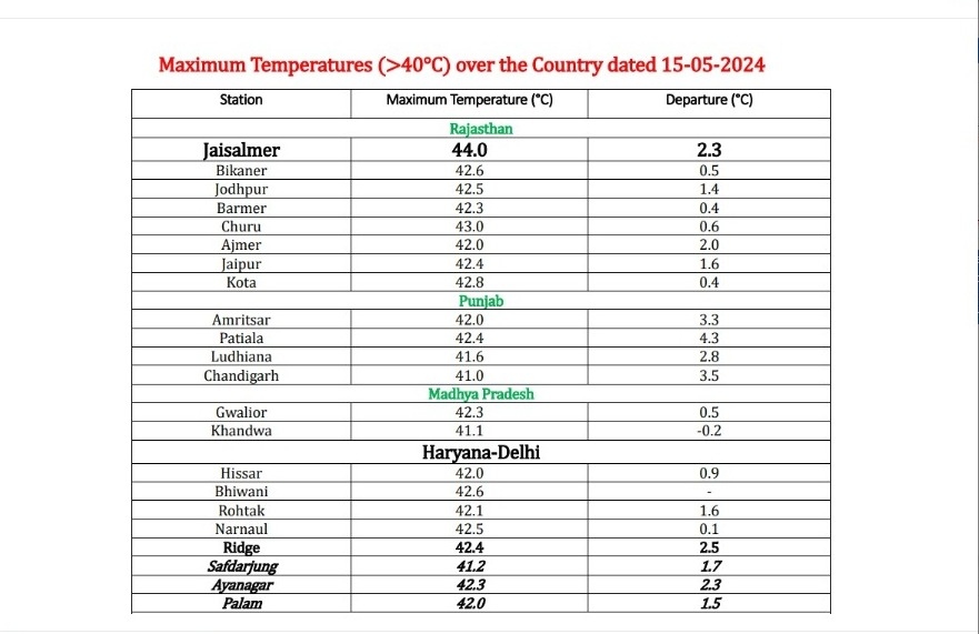 Indeed, Rajasthan's Jaisalmer has reached a sweltering 44°C, Bikaner at 42.6°C, Jodhpur at 42.5°C, and Kota at 42.8°C. Punjab's Amritsar reported 42°C, Patiala at 42.4°C, and Ludhiana at 41.6°C. Meanwhile, Madhya Pradesh's Gwalior recorded 42.3°C and Khandwa at 41.1°C.