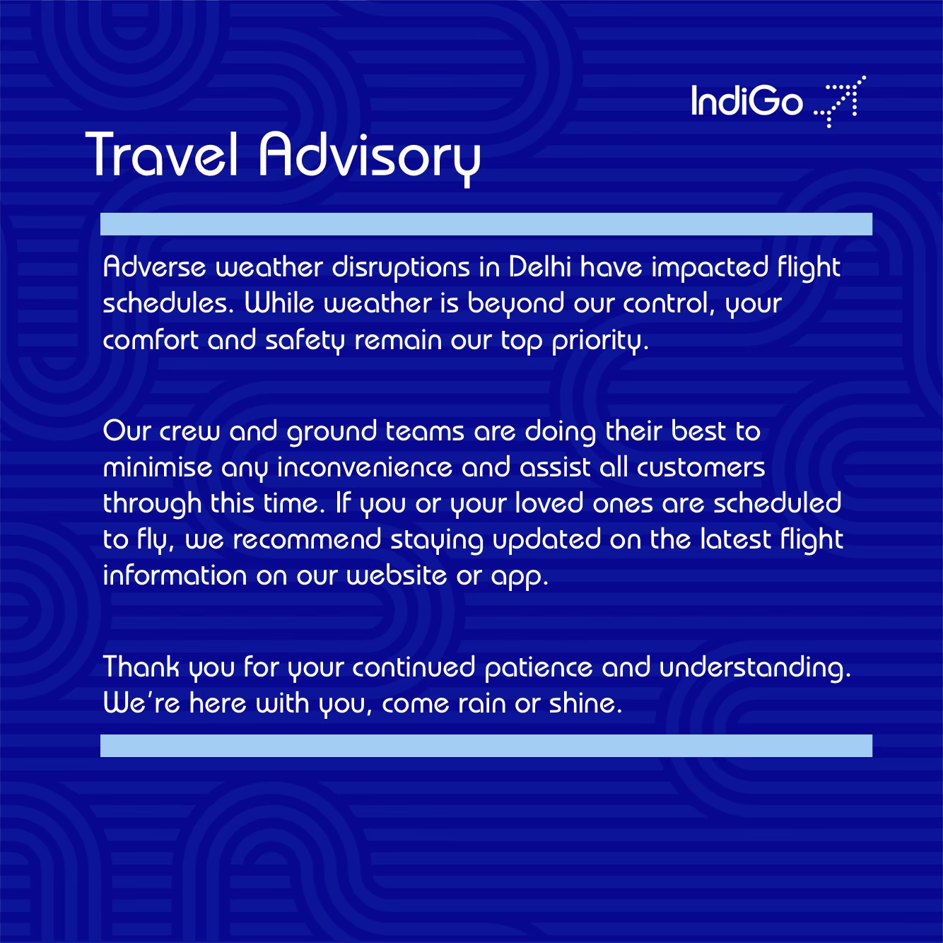Indigo issued another update an hour later indicating gradual improvement in weather but warned that air traffic congestion persisted, possibly affecting flights.