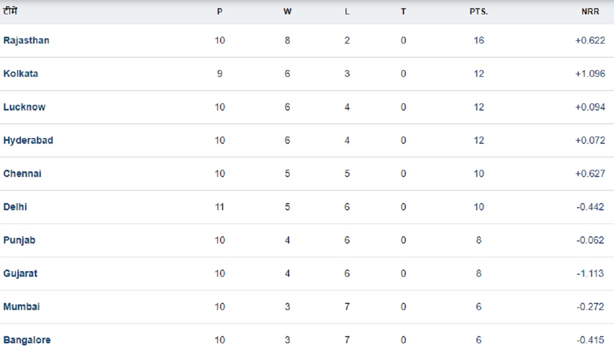 Rajasthan Royals would have been the first team to secure a playoff spot had they won the match. However, their wait has now been extended. They have won 8 out of the 10 matches played, accumulating 16 points and currently sitting at the top of the table.