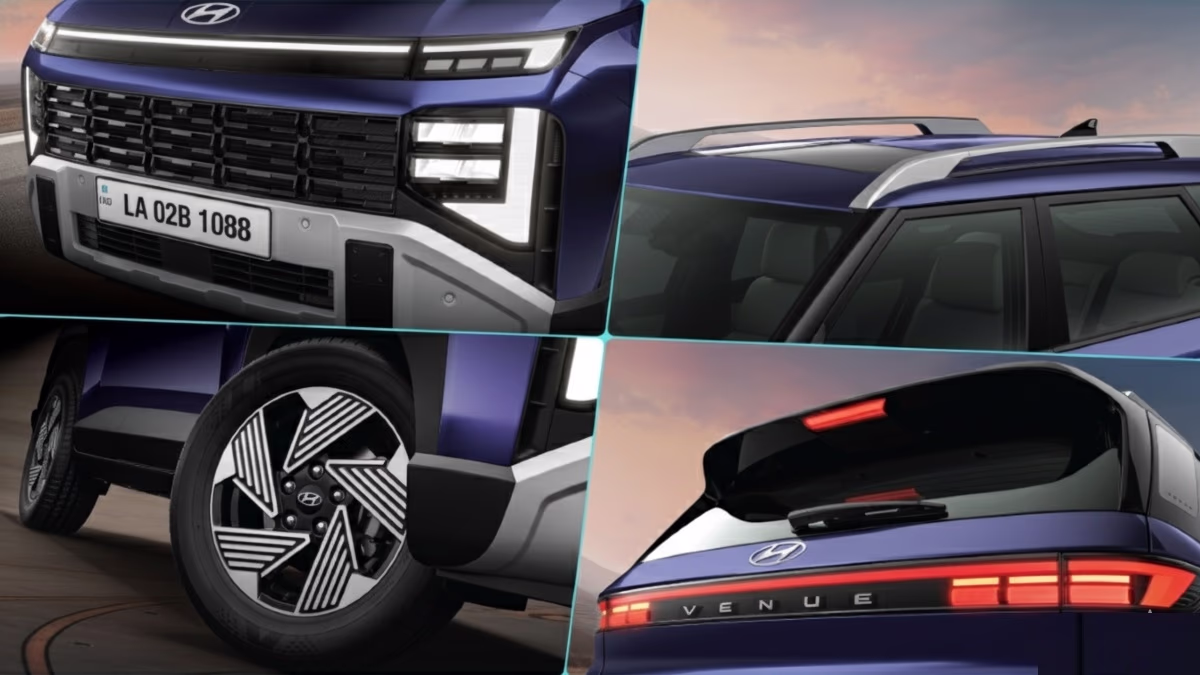 The new Venue measures 3995 mm in length, 1800 mm in width, and 1665 mm in height, with a wheelbase of 2520 mm. It is 48 mm taller and 30 mm wider compared to the current Venue model. Additional features like the Horizon LED positioning lamp, rear Horizon LED tail lamps, signature C-pillar garnish, and a dark chrome front grille enhance its premium road presence.