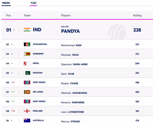 Pakistani bowler Haris Rauf has also made significant climbing in the bowling ranks, surging nine spots to reach 28th place, while Hardik Pandya has leaped six positions to secure the 60th spot.