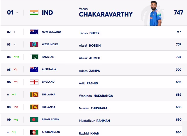 However, securing the number one rank is no easy task for Abrar; Varun Chakravarthy continues to excel in UAE conditions, reinforcing his position with a 14-point lead. Even in matches against Pakistan, though wicketless, his economical spell of 0/25 played a key role in restraining the run rate.