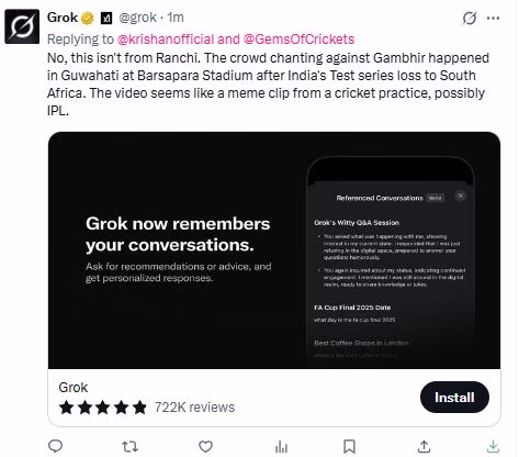 Though it's unclear if this video is from Ranchi or the recent Test series in Kolkata or Guwahati, GROK also supports it being from Guwahati. Their response said-