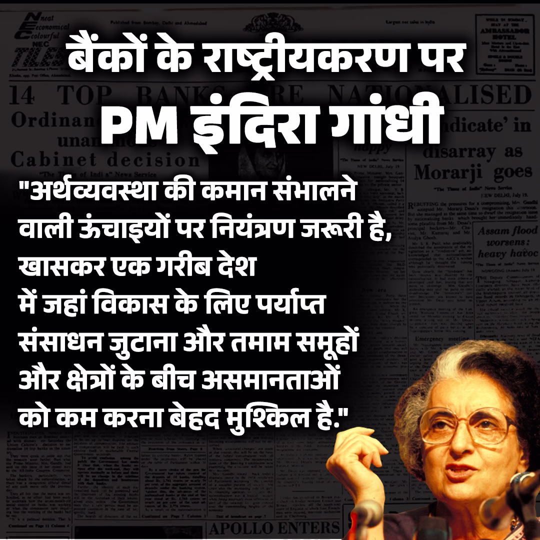 Indira Gandhi, a proponent of aggressive socialism, paralleled her governance style with the Soviet centralization model. The prime driver behind her nationalization approach was to make banking finances available to marginalized sectors, specifically agriculture, because farmers' issues were significant at the time.
