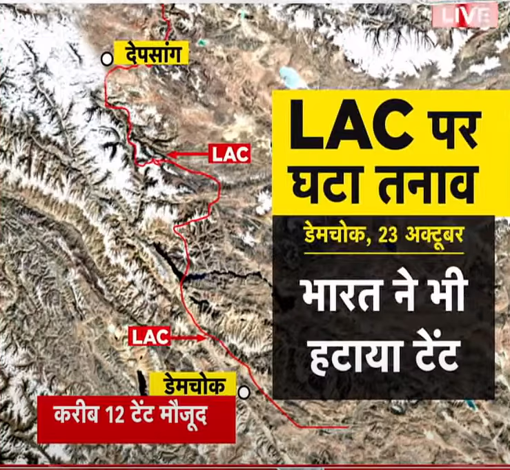 In Depsang, the Chinese army doesn't have tents but has used tarpaulins between their vehicles to create temporary shelters. So far, half of these structures have been dismantled in Depsang. The Chinese army has reduced the number of vehicles in the area, and the Indian army has also decreased some of its troops from there.