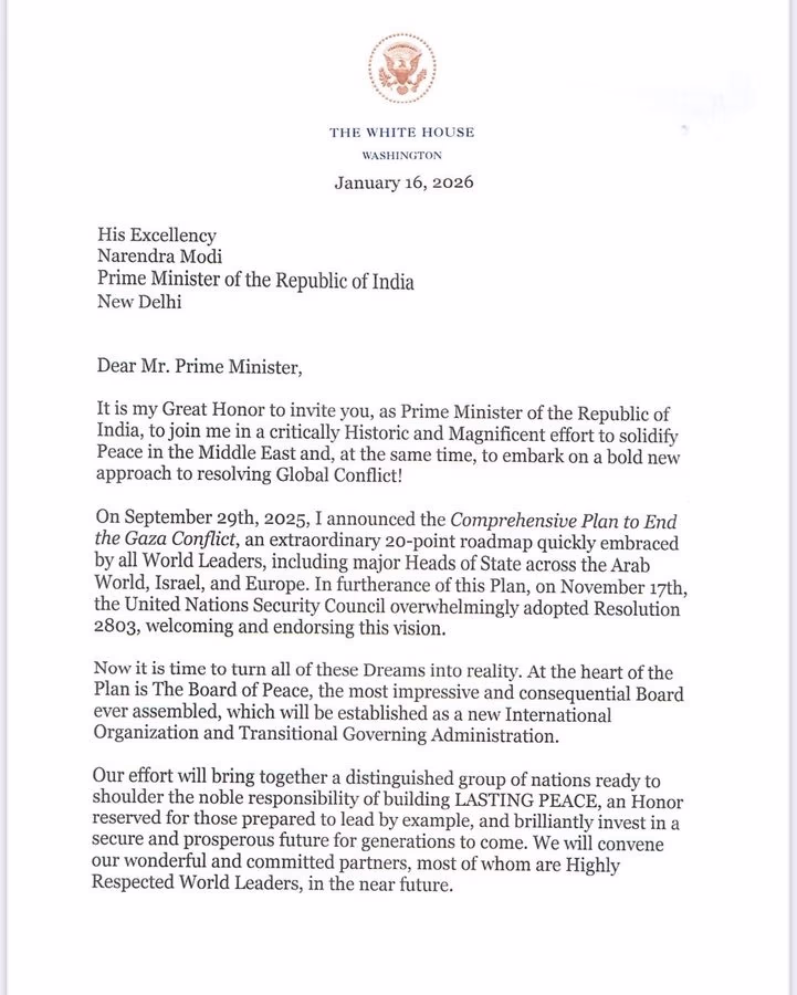 The United States has extended an invitation to India to join the Gaza Board of Peace. This board is the second phase of President Donald Trump's initiative aimed at completely ending the Israel-Hamas conflict. Despite the ceasefire, reports indicate ongoing Israeli attacks in Gaza.