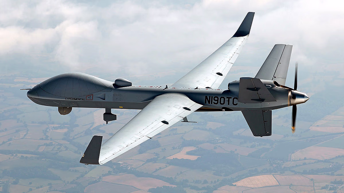 The MQ-9B boasts a 1900 KM range and a payload capacity of 1700 KG, navigated by operators from a ground control station akin to a sophisticated video game interface.