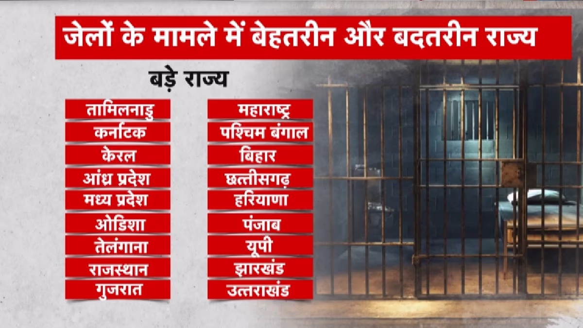 The India Justice Report ranks prisons across the country. Tamil Nadu, Karnataka, and Kerala lead for having well-run facilities, while Uttarakhand, Jharkhand, and Uttar Pradesh rank the lowest.