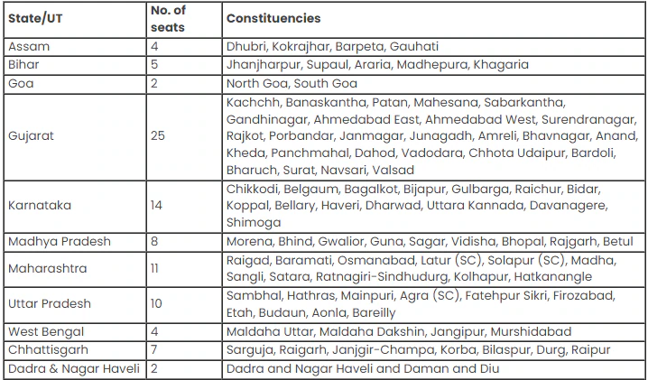 With Gandhinagar witnessing a clash between BJP candidate Amit Shah and Congress's Sonal Patel; Baramati hosts the electoral challenge between Sunetra Pawar and Supriya Sule. Rajgarh sees a contest between Digvijaya Singh and Rodmal Nagar, while Mainpuri sets the stage for a straight fight between Dimple Yadav and Jayvir Singh.