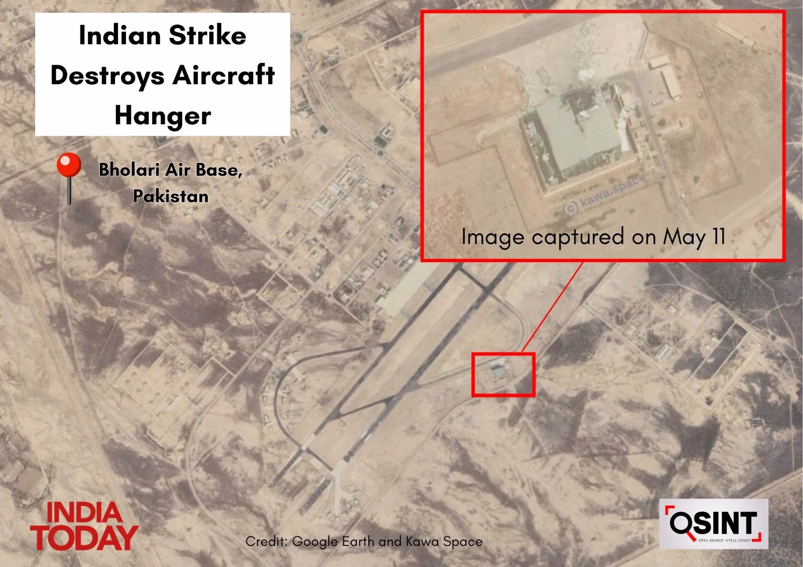 Satellite imagery from Maxar Technologies dated May 13 revealed extensive damage to several Pakistani airbases, including Noor Khan. The satellite images exposed destruction at Noor Khan (Rawalpindi), Mushaf (Sarghoda), Bholari (Karachi), and Shahbaz (Jacobabad) airbases. Comparisons of satellite images taken before (April 25, 2025) and after (May 10, 2025) the Indian attack highlighted significant damage across Pakistan's four key airbases, particularly Noor Khan Airbase. Pakistani military spokesperson Lieutenant General Ahmad Sharif Chaudhry stated that the Indian Air Force targeted Noor Khan (Chaklala, Rawalpindi), Muridke (Chakwal), and Rafiqui (Shorkot in Jhang district) airbases during a press conference held in Islamabad around 4 AM on May 10, 2025.