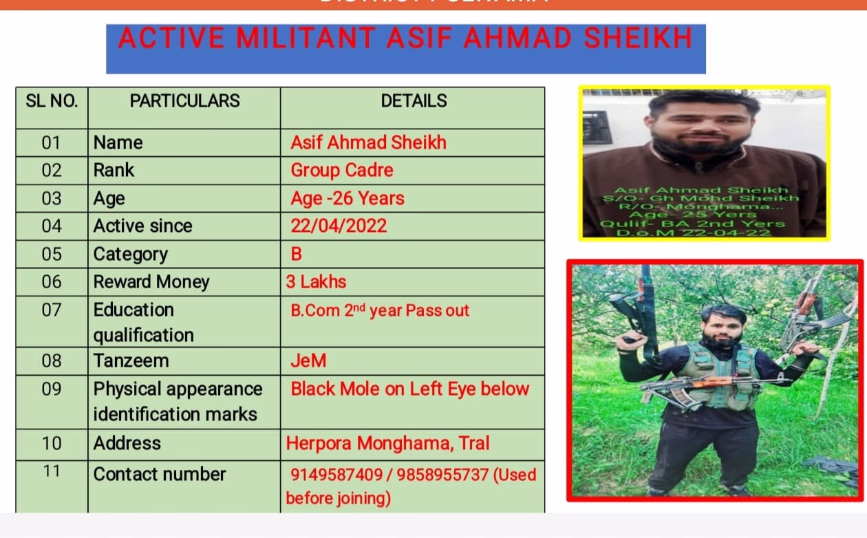 Among those killed was Shahid Kutta, a Shopian local who joined Lashkar on March 8, 2023. He was involved in the murder of a BJP Sarpanch in Hirpora, Shopian on May 18, 2024. Another militant, Adnan Shafi Dar from Wanduna Melhora, Shopian, joined Lashkar on October 18, 2024 and was involved in the killing of a non-local laborer in Shopian on October 18, 2024.