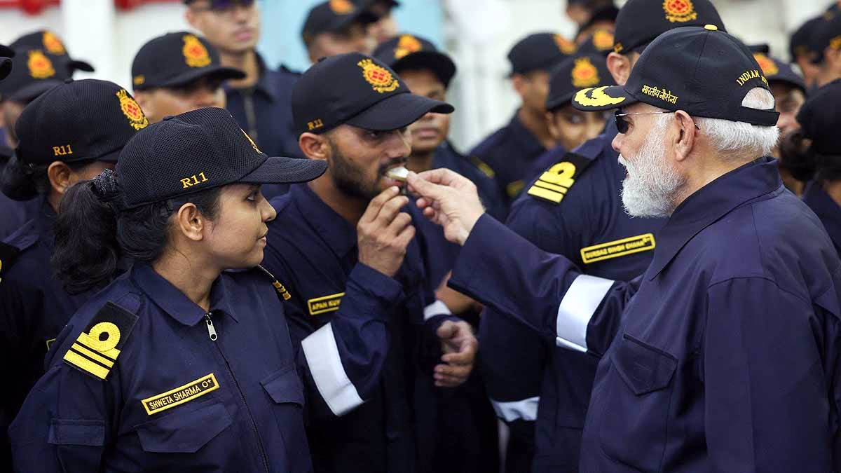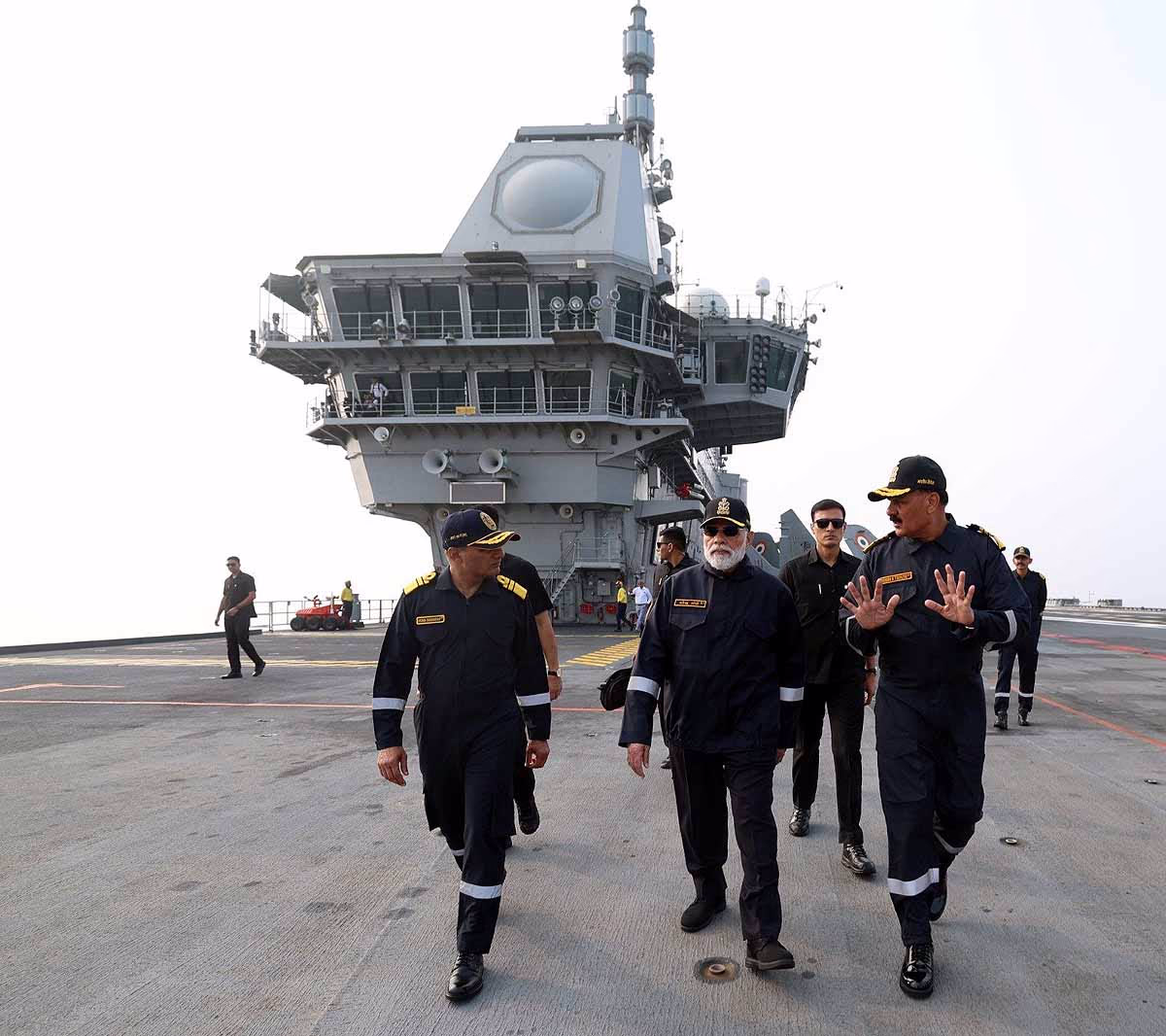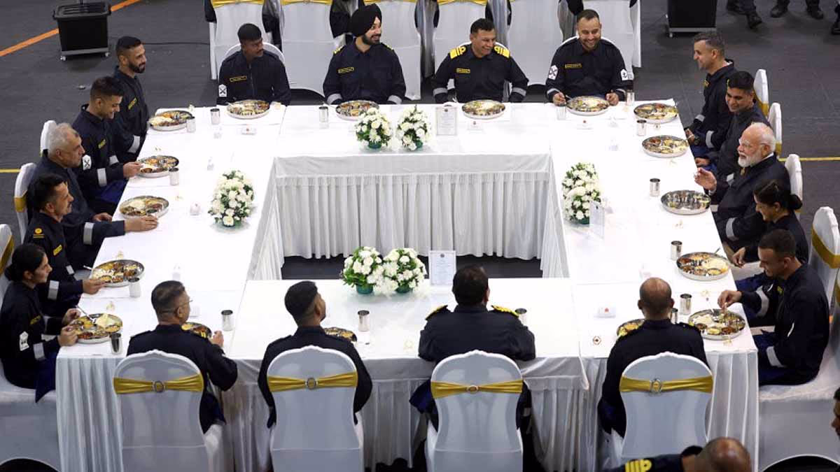 The Prime Minister regarded the Navy as guardian of the Indian Ocean. He witnessed the power of military equipment, such as large ships, fast aircraft, and submarines. These are made of iron, but when you operate them, they come alive. Since yesterday, I’ve been with you, learning something new every moment. I have witnessed the dedication of the sailors.
