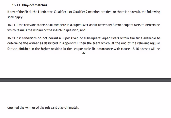 Even if rain disrupts the reserve day, and five overs can't be played, the IPL champion might be decided by a Super Over. In the event the Super Over can't materialize, the title will be awarded based on the points standings.
