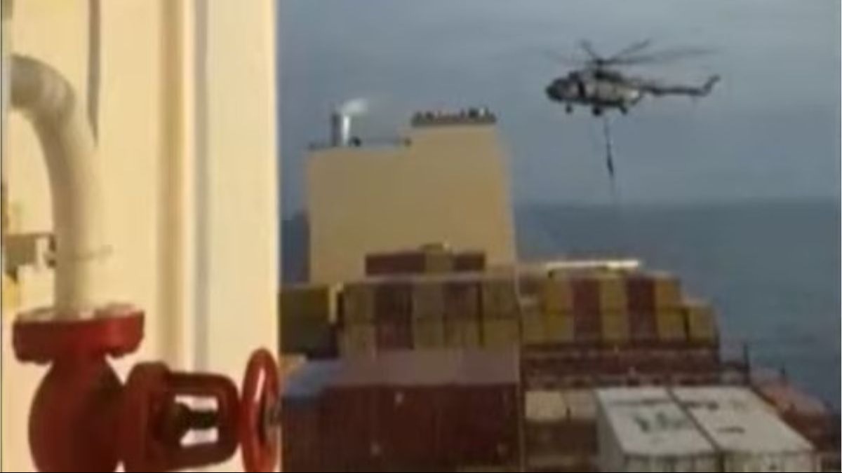 Footage of the raid on the Israeli ship surfaced, showing Iranian commandos surrounding the vessel from a helicopter. This development follows an Israeli airstrike on an Iranian embassy in Syria, which resulted in the death of a commander. Iranians seized the ship MSC Aries on Saturday morning.