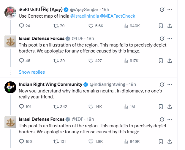 Reacting to the post, numerous users highlighted inaccuracies in India's representation on the map. The IDF responded by stating that the post was merely an illustration of the areas falling within missile range and did not depict boundaries accurately, expressing regret if this image had offended anyone.