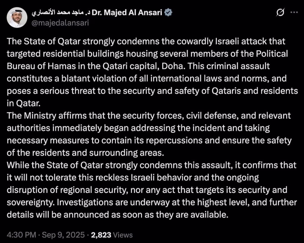 Qatar warned against tolerating such Israeli actions, pursuing high-level investigations viewing any aggression as an infringement on national security and regional sovereignty.