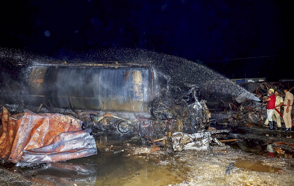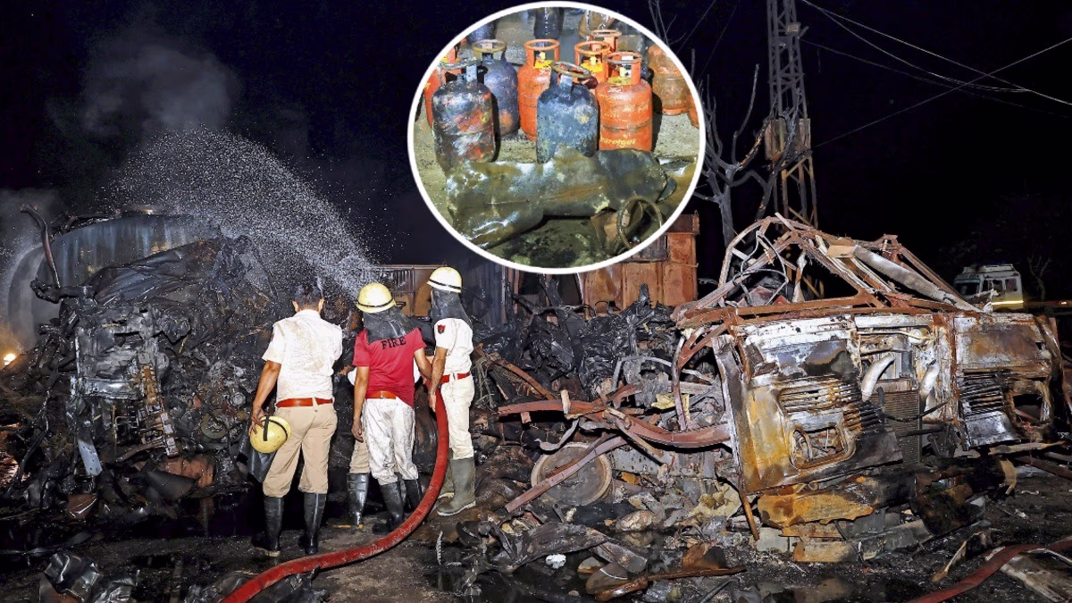 Out of the 330 cylinders on the ill-fated truck, about 200 exploded. This scene is reminiscent of a tragic fire in Bhankrota exactly 10 months ago that claimed 20 lives.