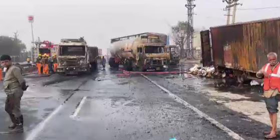 Jaipur: Ferocious Crash Between LPG and CNG Trucks Leaves 6 Dead, 41 Injured, Vehicles Ablaze