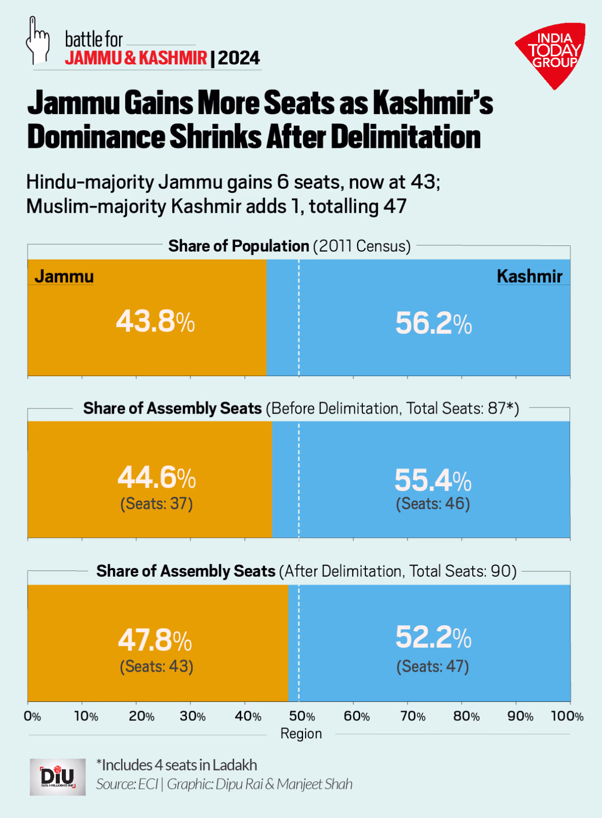 The political landscape of Jammu and Kashmir has dramatically changed. The revocation of Article 370 in 2019 ended the special state status and converted it into a Union Territory. In 2022, a delimitation process increased the number of assembly seats to 90, adding new constituencies in districts like Samba, Rajouri, and Kathua in Jammu. In Kashmir, Kupwara received an additional seat.