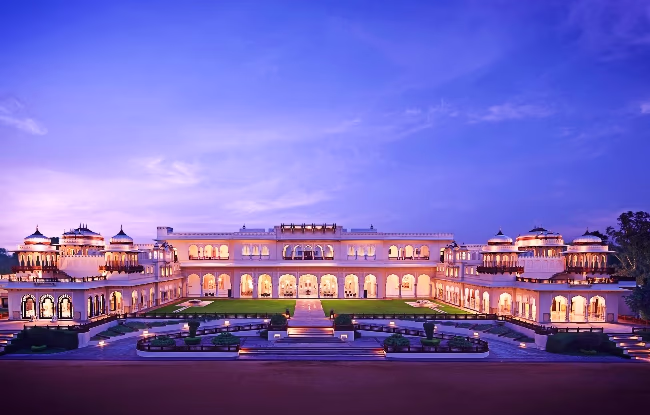 Built in 1835, the Rambagh Palace holds onto its sweeping grandeur. Embellished with intricately carved marble lattice, sandstone balustrades, and lush Mughal gardens, it once served as a royal guesthouse and hunting lodge.